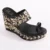 Black wedge sandals featuring hand-embroidered golden floral patterns, offering both height and stability with a unique handcrafted design.